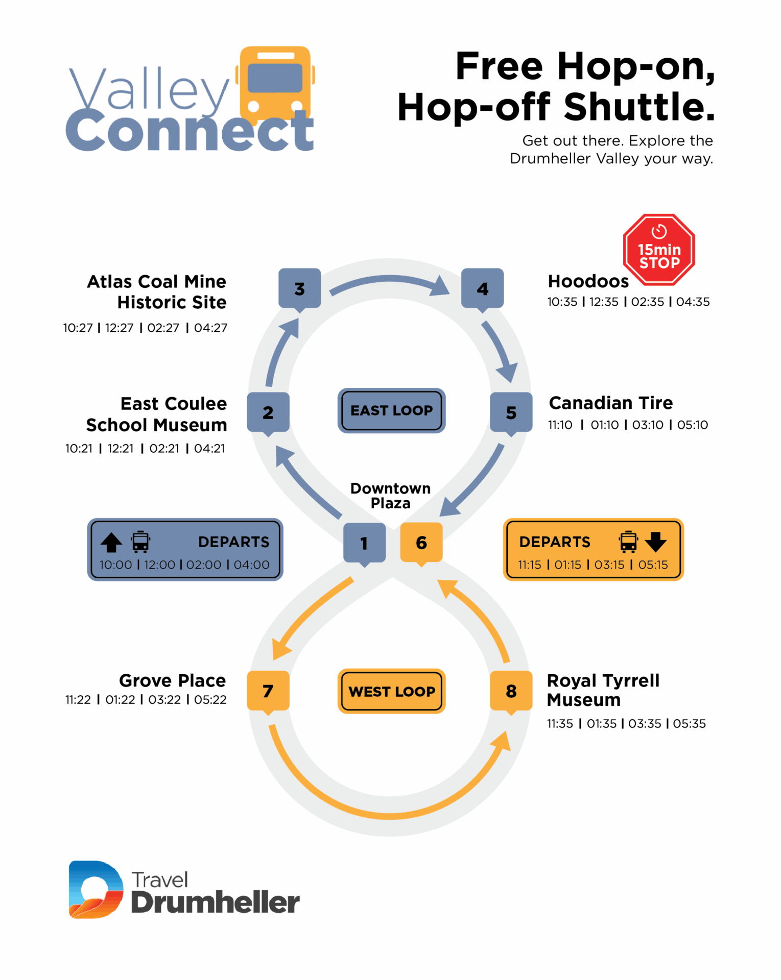 Explore the Drumheller Valley on the FREE hop-on, hop-off shuttle.